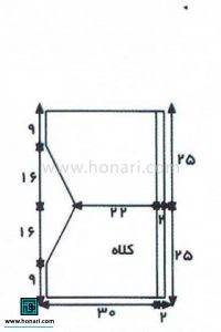 در این میان، در رج بیستم، آن چهارده دانه وسط را به صورت هفت تا در هر سمت پیچ می‌دهیم و در رج چهلم نیز یک بار دیگر این پیچ دادن را تکرار می‌کنیم.