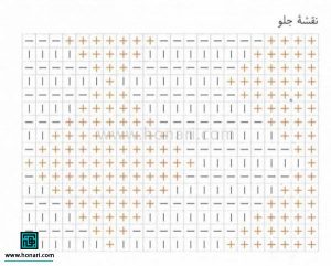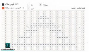 با نخ طوسی سوپرلانا میدی، ۴۸ دانه سر میاندازیم و ۵ سانتیمتر بافت جودانه کار میکنیم. بعد از آن، با نخ طوسی روشن، ۱۲ دانه را به صورت جودانه و ۲۱ دانه را طبق نقشه میبافیم. ۱۵ دانه باقیمانده را با نخ طوسی ساده بافته و طرح را ادامه میدهیم.