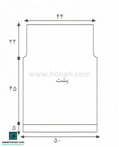 وقتی قد بافت به ۵۰ سانتیمتر رسید، در رجهای رفت، برای قسمت آستین به ترتیب ۱، ۱، ۲ و ۳ دانه را کور میکنیم.