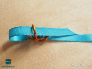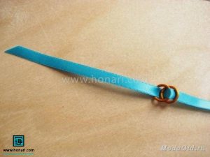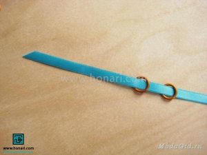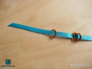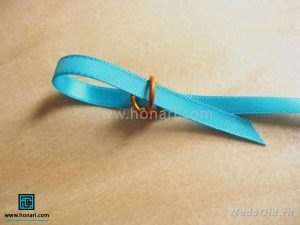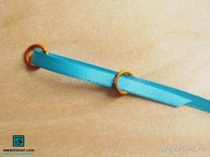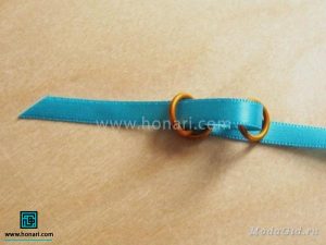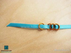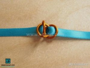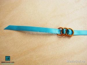در مرحلهٔ بعد، دو عدد از حلقهها را از داخل روبان عبور میدهیم.