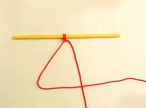 یکی از نخ‌ها را طوری قرار دهید که از روی نخ دیگر عبور کند.