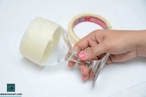 در مرحله بعد، قسمتهایی را که نمیخواهیم تغییر کنند، با نوار چسب پهن میپوشانیم.