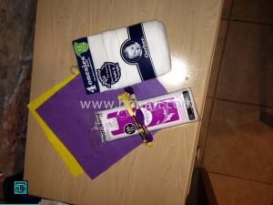 – پارچه نمدی به رنگهای زرد و بنفش