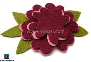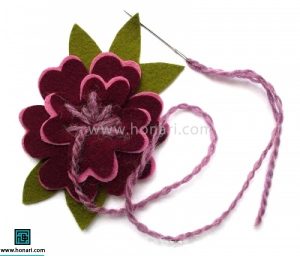 وقتی قسمت گلبرگ آماده شد، آن را به برگ و کاسبرگ سبز رنگی که از نمد بریده‌ایم متصل می‌کنیم.