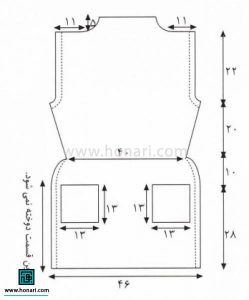 برای بافتن هر قطعه جیب، ۳۰ دانه سر میاندازیم. در دو طرف این دانهها، یک دانه را به عنوان دانه لبه میبافیم. دانههای وسط را با بافت ساده (سلانیک) به اندازه ۱۳ سانتیمتر بافته و سپس تمام دانهها را میبندیم. جیبها را دقیقاً طبق الگوی مشخص شده میبافیم.