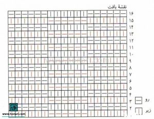 در رج برگشت، بعد از ۸ دانه اول، دو تا را با هم یکی میکنیم و این کار را ۱۲ بار تکرار میکنیم.