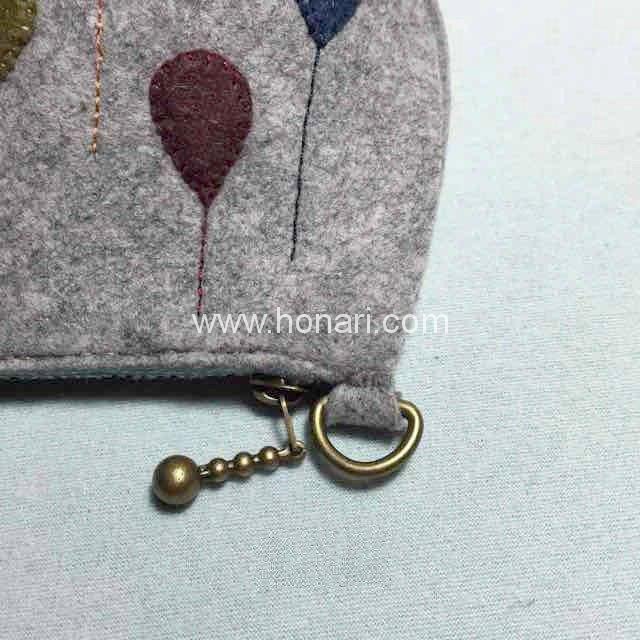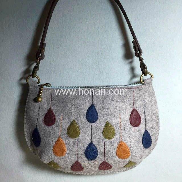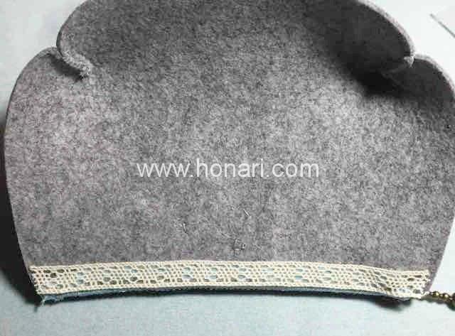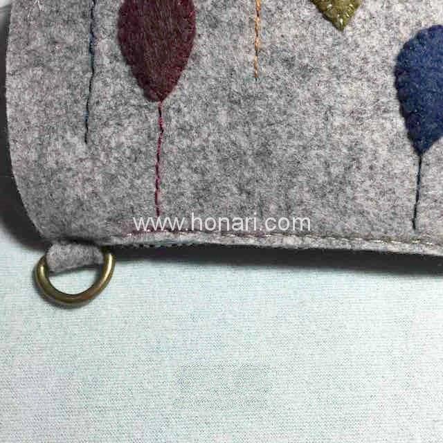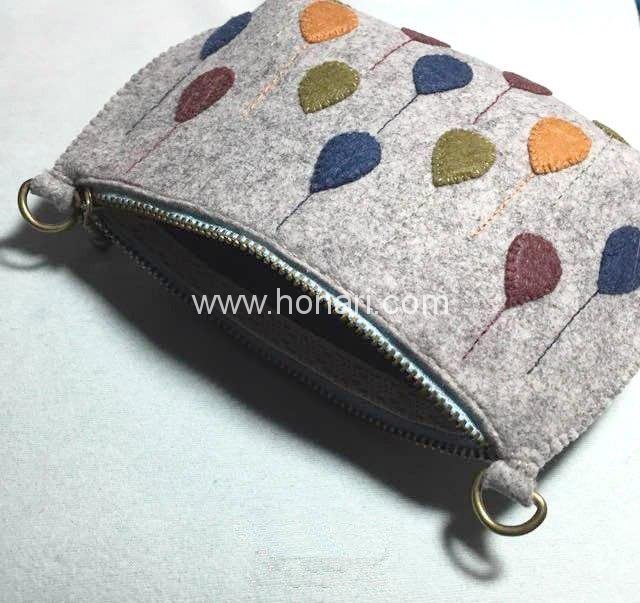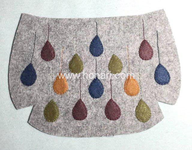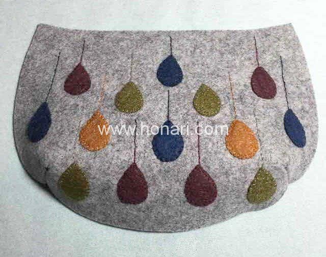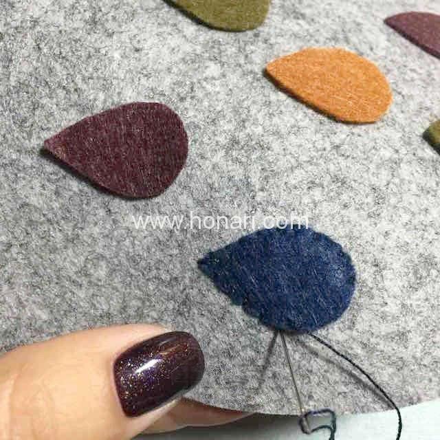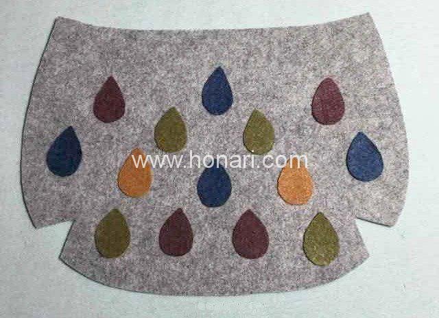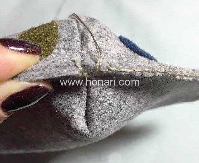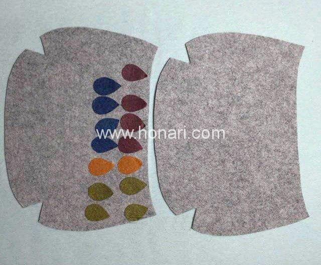 اشکهای نمدی را به دلخواه خود روی کیف بچینید. سپس جای آنها را با سوزن محکم کنید.