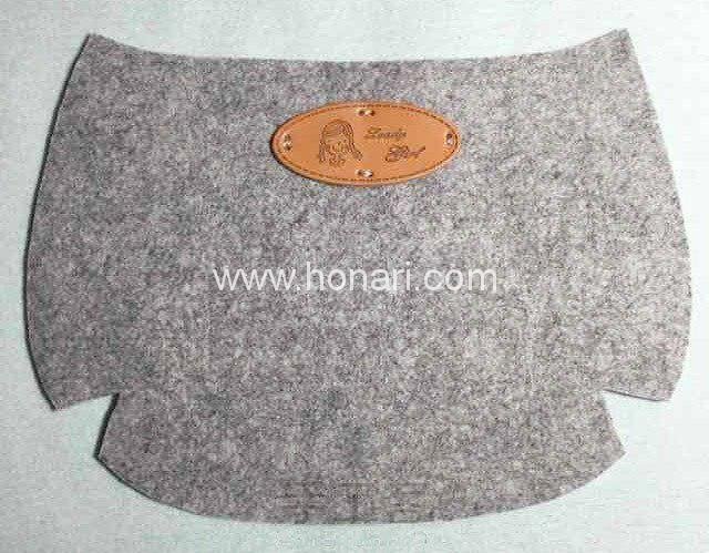پشت کیف دقیقاً به اندازه قسمت جلوی آن است. برای زیباتر شدن کار، میتوانیم از برچسبهای آمادهای که در بازار وجود دارند استفاده کنیم و آن را روی قسمت پشتی کیف بدوزیم.