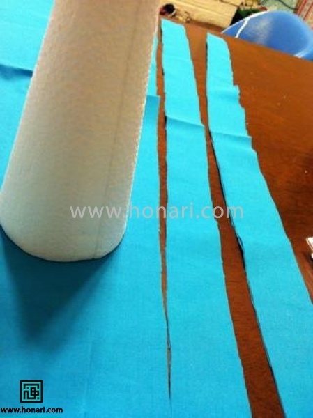 مطابق با اندازه‌ای که یونولیت شما دارد (که نقش پایه درخت کاج را خواهد داشت)، پارچه نمدی را به شکل نوارهای بلند ببرید.