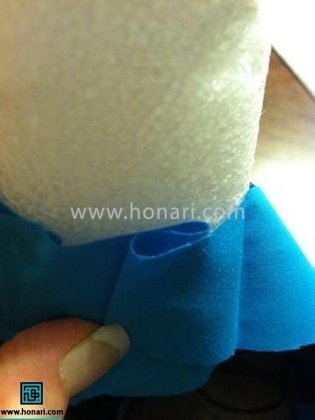 نوارهایی که بریده‌اید را به صورت چین‌چین دور استوانه قرار دهید و با دست آن را نگه دارید. برای اینکه چین‌های درخت کاج نمدی شما ثابت بماند، می‌توانید از سوزن‌های ته‌گرد نیز کمک بگیرید.
