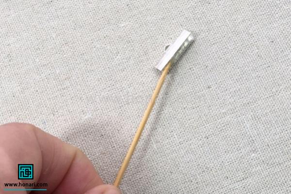 برای اتصال محکمتر، قسمت کوچکی از بست که قرار است به دستبند وصل شود را با چسب حرارتی آغشته میکنیم.