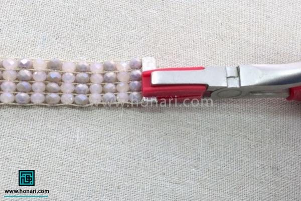با استفاده از انبر، حلقهٔ انتهایی دستبند را به خوبی فشرده و محکم میکنیم.