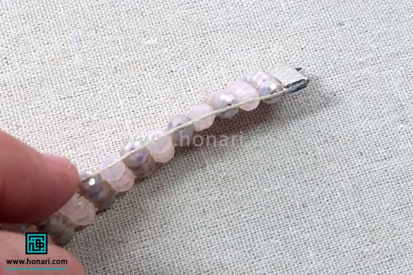 بند دیگر دستبند را نیز وصل میکنیم. سپس قفلهای دستبند را به این بندها متصل کرده و کار ساخت دستبند را به پایان میرسانیم.