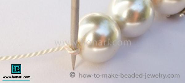 در این آموزش یاد می‌گیرید که چطور مرواریدها را به هم گره بزنید و همچنین چطور نخ ابتدا و انتهای دستبند را به شکلی قایم کنید که دیده نشود.
