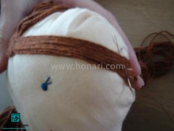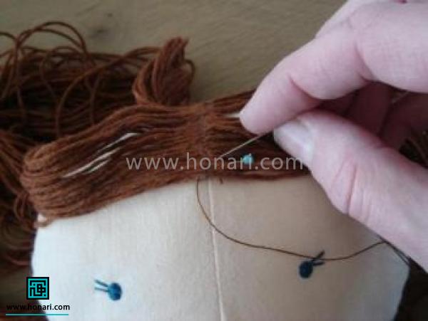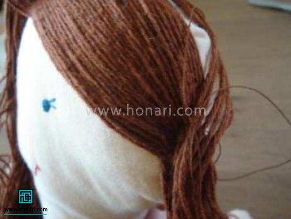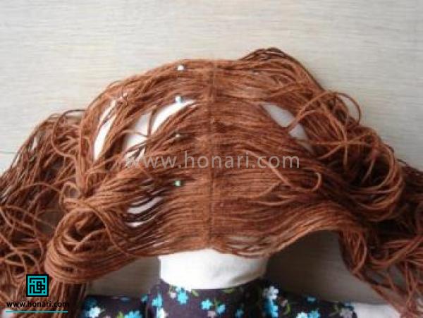 اگر دوست دارید، می‌توانید از موی آماده عروسک برای کار نمددوزی خود کمک بگیرید.