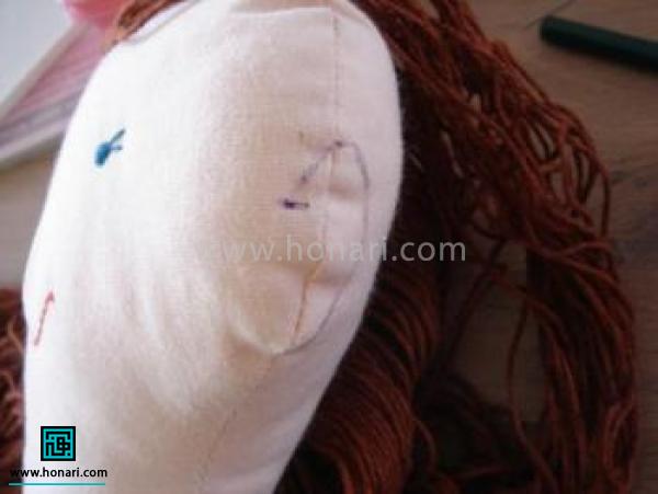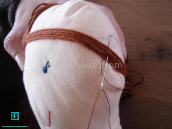 حالا قسمتی که با چرخ دوخته بودید را با کوک به قسمت سر بدوزید و متصل کنید.