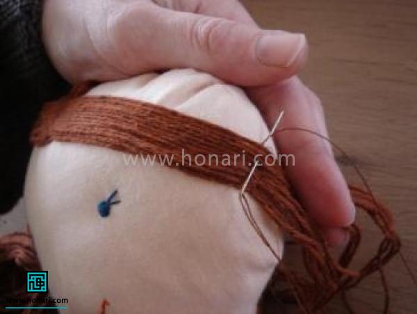 اگر دوست دارید، می‌توانید از موی آماده عروسک برای کار نمددوزی خود کمک بگیرید.