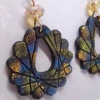 در این مرحله، وسط خمیر را مانند آنچه در فیلم نشان داده شده، برش میزنیم. سپس نخ را از دور گوشواره باز میکنیم. با استفاده از رنگهای طلایی، سبز و آبی، گوشواره را رنگآمیزی میکنیم.