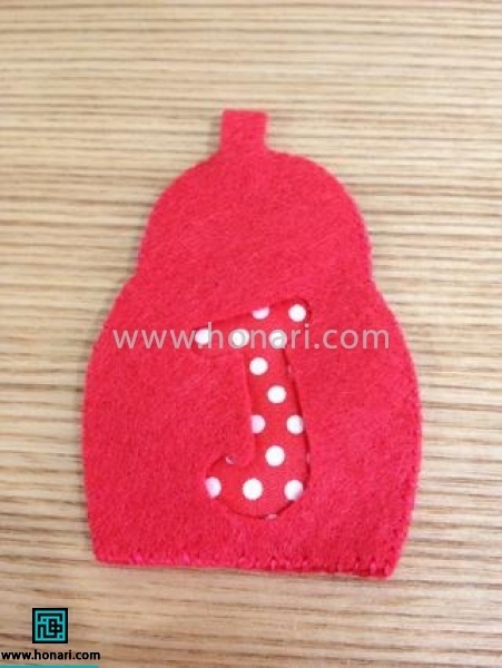 برای اتصال آویز به عروسک نمدی، یک تکه نمد به شکل مستطیل کوچک برش بزن. سپس لبههای آن را با دوخت به هم متصل کن و در پایان با استفاده از چسب، از قسمت داخلی کار، آن را به پشت عروسک محکم بچسبان.
