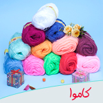 ابتدا کامواها را به اندازه دلخواه ببرید. تعداد این رشتهها باید با تعداد خانههای تور شما برابر باشد. من خودم حدود ۷ سانتیمتر برش میدهم تا وقتی کاموا دولا شود، طول آن به ۳/۵ سانتیمتر برسد.