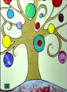 آموزش نقاشی روی شیشه طرح درخت رنگی