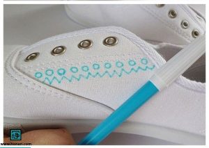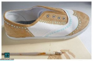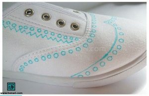 می‌توانید با رنگ مخصوص پارچه، روی کفش‌های ساده و پارچه‌ای خود طرح‌های زیبا و جدیدی ایجاد کنید.