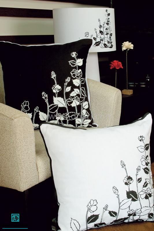توجه داشته باشید: برای هماهنگی رنگ روی کوسن‌ها، بهتر است از پارچه‌های سیاه و سفید استفاده کنیم و رنگ‌آمیزی هر کدام را دقیقاً برعکس دیگری انجام دهیم.
