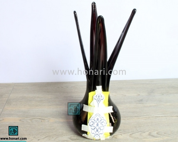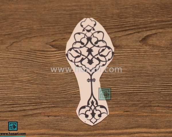 پس از برش الگو از روی کاغذ، طرح به این شکل روی گلدان باقی میماند.
