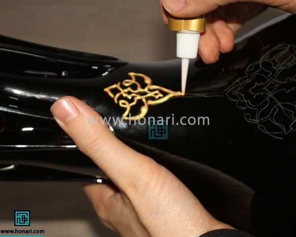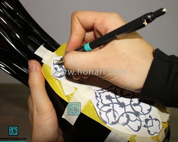حالا با یک قلم دورگیر ویترای، طرح خودتان را به آرامی روی سطح کار بکشید.