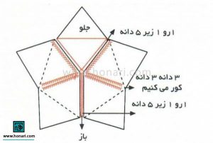 در دو طرف کار، بعد از یک دانه زیر، یک دانه رو، یک دانه زیر و یک دانه رو، یک دانه کم کنید.