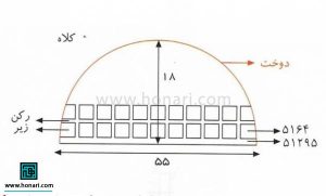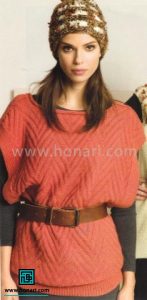 کلاه: با نخ سوپرلانا، به اندازه ۶۷ دانه سر میاندازیم و سه رج رکن میبافیم. سپس با نخ ماکسی فلور ادامه میدهیم و از اول و آخر رج، سه دانه را به صورت زیر میبافیم.