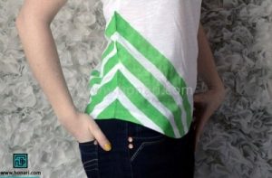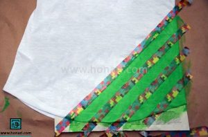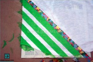 در مرحله دوم، با کمک چسب، خط‌هایی کج و مورب می‌کشیم که فاصله بین همه آن‌ها یکسان باشد.