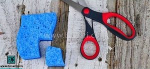 بعد، یک اسفنج را مانند تصویر زیر قیچی میکنیم.