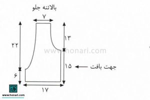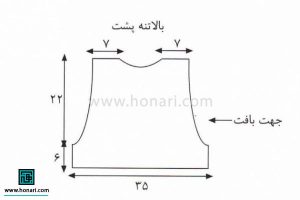 برای ایجاد فرورفتگی یقه در قسمت پشت، ۳ دانه را میبندیم. سپس ۱۷ رج به صورت رکن میبافیم.