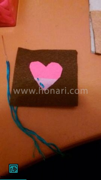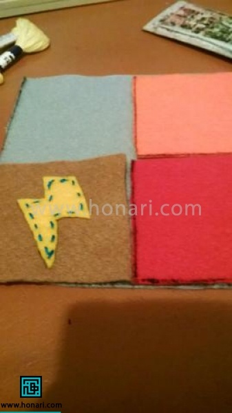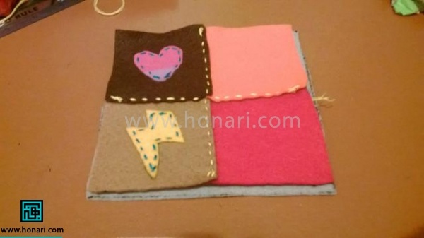 قطعههای نمدی برشخورده را در جای صحیح خود بگذارید و با کمک سوزن تهگرد محکم کنید. سپس آنها را به خوبی بدوزید.