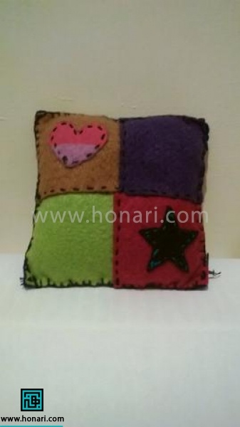 میتوانید برای تزیین سطح رویی کوسن، از شکلهای مختلف نمدی استفاده کنید. این شکلها را مطابق سلیقه خودتان و با نمدهای رنگی دیگر برش بزنید و روی کوسن قرار دهید.