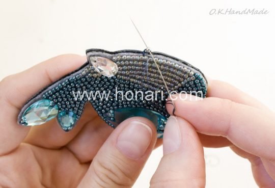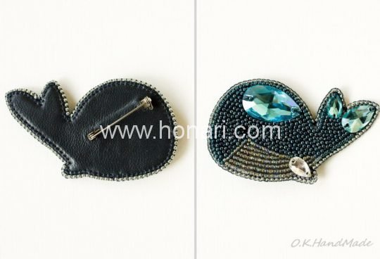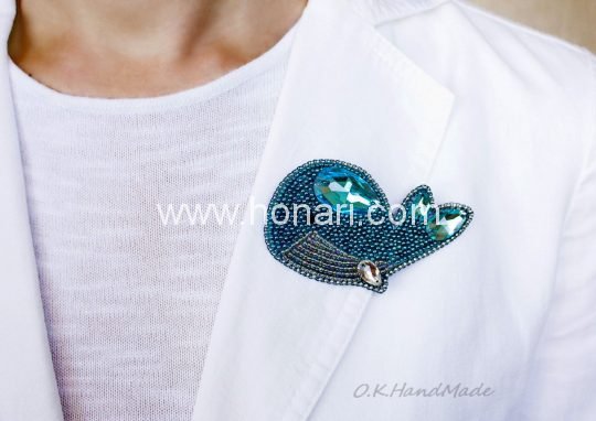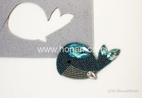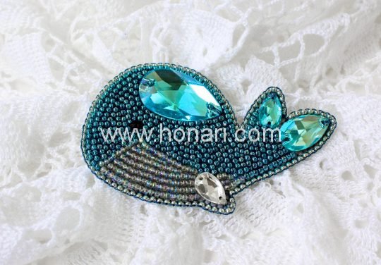 آموزش گام به گام جواهر دوزی سنجاق سینه با طرح نهنگ