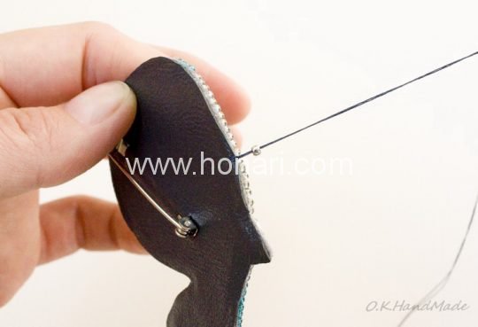 حالا باید با قیچی یا کاتر، برش‌های مورد نیاز را روی چرم ایجاد کنید تا بتوانید سنجاق را به آن متصل نمایید.