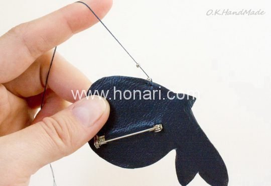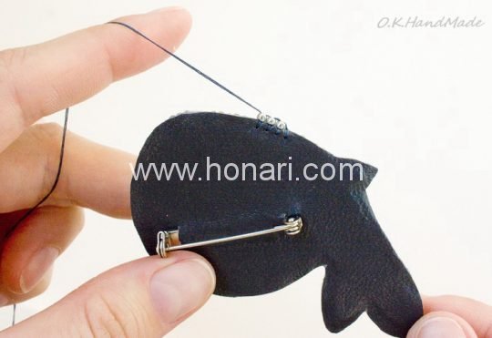 بعد، چشم نهنگ را با نخ مشکی در جای خودش بدوزید.