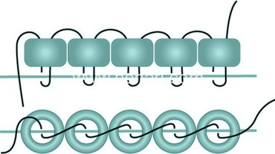 در این روش، نخ از داخل هر مهره دو بار عبور می‌کند. این کار باعث می‌شود کار شما منظم‌تر و یکدست به نظر برسد و همچنین استحکام بیشتری پیدا کند.