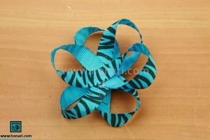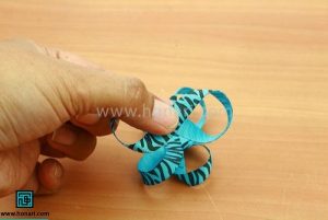 مرحله ششم: نوارهای چسبانده شده را روی هم قرار دهید تا شکل یک گل درست شود.