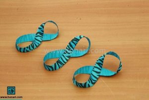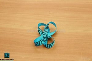 مرحله چهارم: حلقه‌ای که درست کردید را بپیچانید و دوباره با چسب حرارتی محکم کنید تا به شکل علامت (&) درآید.
