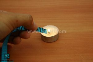 در مرحله دوم، دو سر روبان را با شعله کمی حرارت دهید تا از ریش ریش شدن آن جلوگیری کنید.