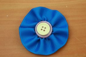 با استفاده از چسب حرارتی، یک دکمه را روی قسمت مرکزی گل بچسبانید. سپس صبر کنید تا چسب کاملاً خشک و ثابت شود.