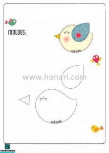 قطعات الگو شامل بدن گرد، سر، بالهای کوچک، نوک و پاهای جوجه است. پس از پرینت گرفتن از الگو، آن را روی نمد مورد نظرتان بگذارید و با دقت قطعات را قیچی کنید. سپس این تکهها را با کوک یا چسب مخصوص به هم وصل کنید. اضافه کردن دو چشم ریز سیاه یا گلدوزی کردن آنها، به جوجه جلوهی خاصی میدهد.
