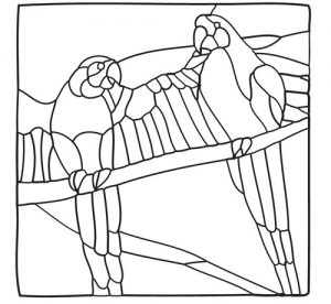 این طرح، صحنهای از دو طوطی را نشان میدهد که در کنار یکدیگر و گاهی در حال صحبت کردن تصویر شدهاند. استفاده از کاشیهای ریز و رنگارنگ، به این اثر جلوهای خاص و چشمگیر بخشیده است. رنگهای درخشان و گرم، شادی و سرزندگی را به نمایش میگذارند و این طرح، نماد عشق، همراهی و وفاداری به شمار میرود.