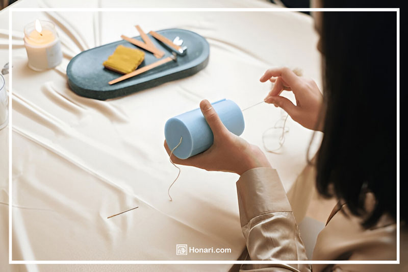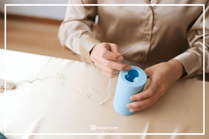 برای درست کردن شمع، گذاشتن فتیله در قالب سیلیکونی مرحله مهمی است. برای این کار، این مراحل ساده را انجام دهید: