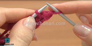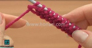 2. سپس به این صورت ببافید: یک ردیف را از زیر ببافید و ردیف بعدی را از رو.