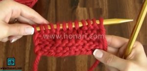 ردیف چهارم: دانههای بافتنی را به صورت یکی رو و یکی زیر ببافید.