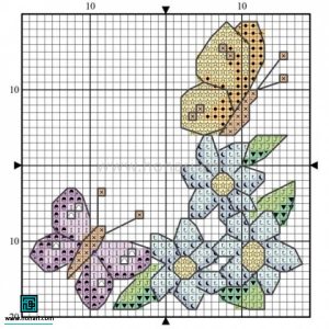 پترن شماره دوزی پروانه و گل (طرح ۱)